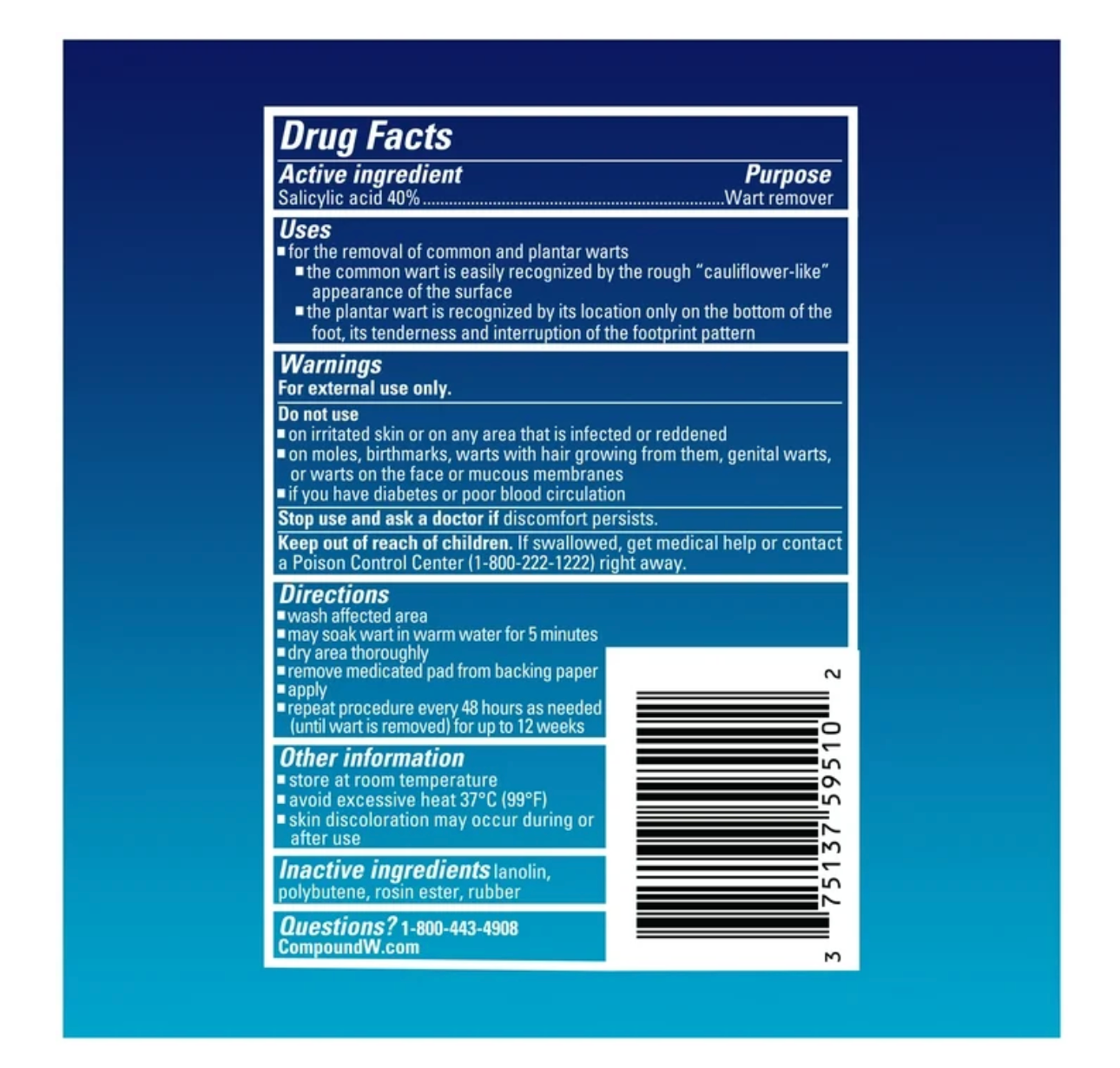 - Compound W strips are easy to use — simply apply and repeat every 48 hours until the wart is removed; The wart remover can be used by adults and children 3 years of age or older