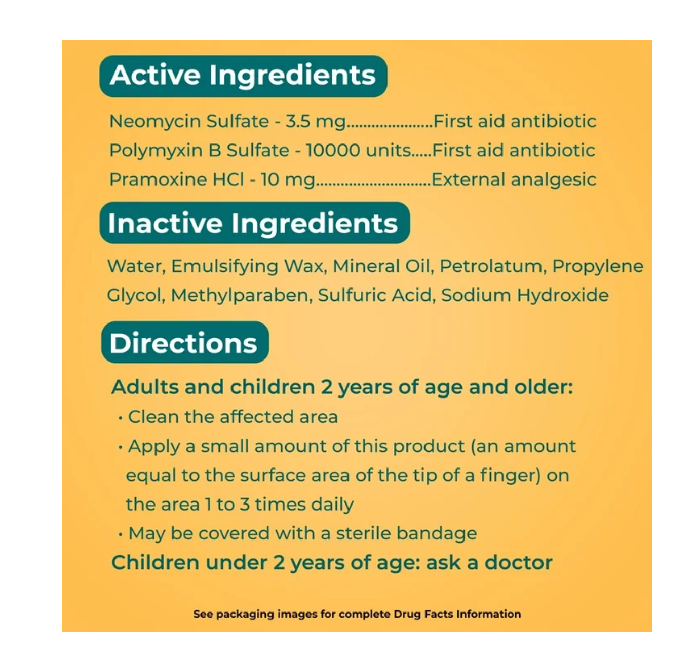 - Topical antibiotic cream provides infection protection of minor cuts, scrapes, burns, & wounds