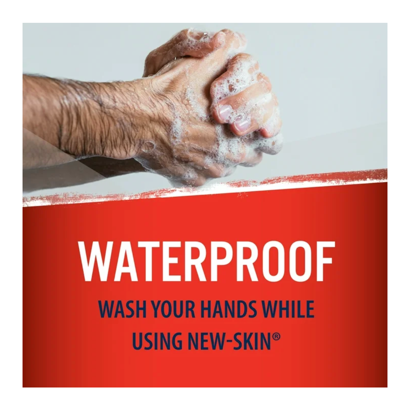 - Waterproof Protection: New-Skin dries rapidly to form a tough waterproof protective cover; Dries clear to match any skin tone; Perfect for blisters, calluses, painful hangnails and chapped, dry, cracked skin